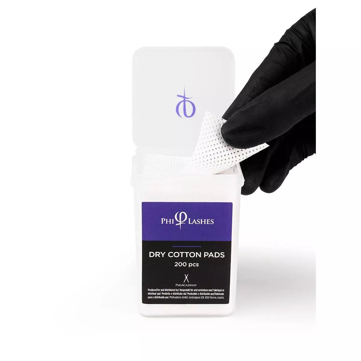 PhiLashes Dry Cotton Pads are white, dry cotton wipes specially designed for use in beauty salons. Thanks to their lint-free texture, they are perfect for effectively removing glue residues from tweezers, bottle caps, and other cosmetic tools. This way, no residue remains during cleaning.